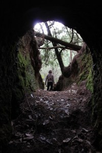 It was, maybe, a hundred years old. Dug with pick and shovel, arch shaped all the way. We crept through, Dan telling me to watch out for the massive cave spiders. I could feel their webs sticking on to my back. The mine went for what seemed like forever into the hill until it branched off into three corridors. It was warm in there, but oppressively dark and claustrophobic for me.